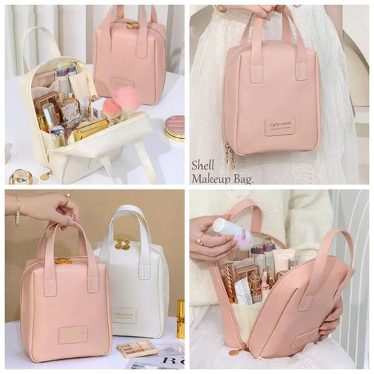 Shell Shape PU Leather Cosmetic Bag Waterproof Letter Makeup Pouch Bag Multifunction Carry-on Makeup Tote Travel Wash Bags