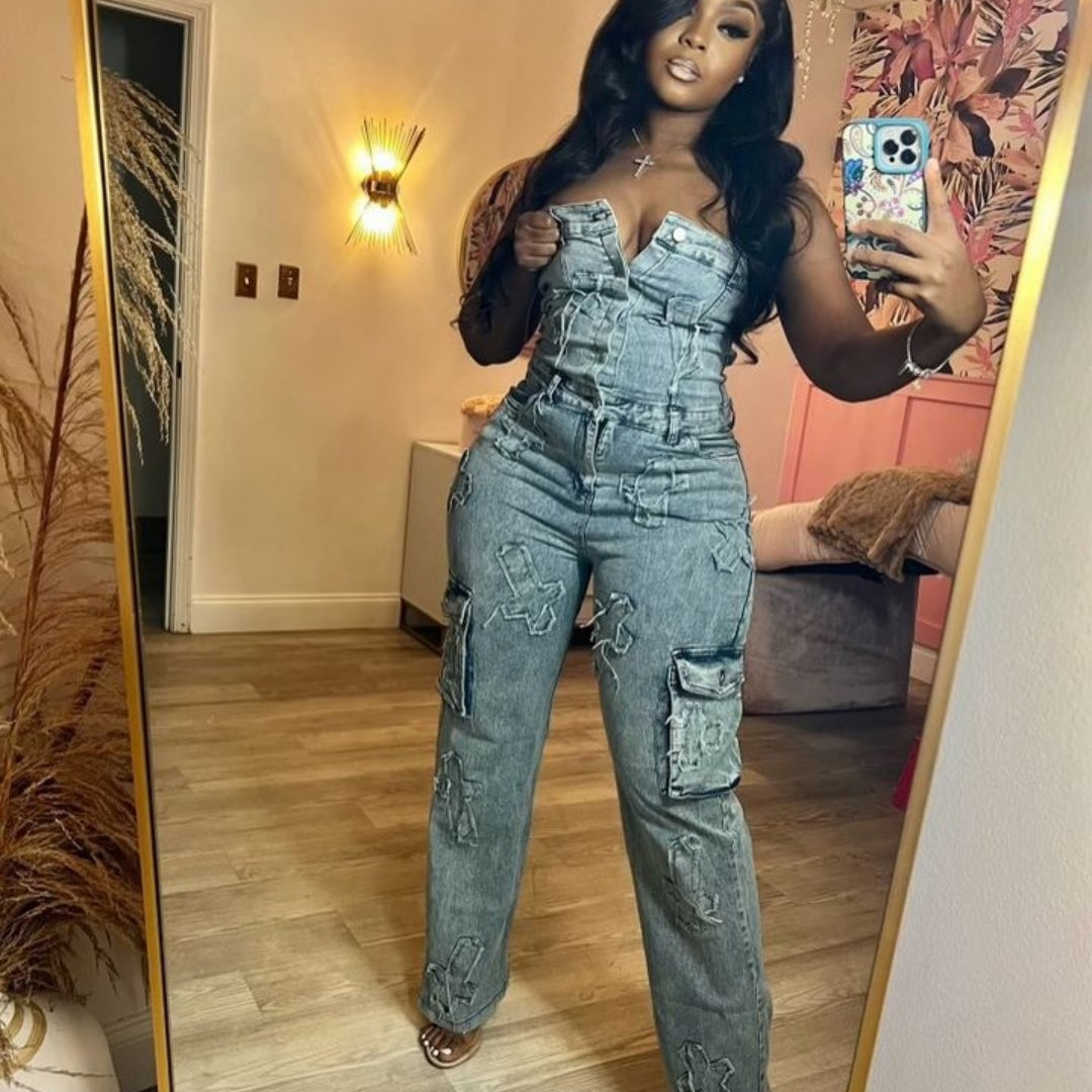 Stand all the way out in the Patch Me In Jumpsuit, a tube-top denim one-piece that redefines what it means to wear your attitude. With a sculpted bodice, stretch fit, and all-over patch embroidery, this straight-leg stonewashed jumpsuit is both structured and unapologetically bold. Cargo pocket elements and rough-cut patchwork add that vintage streetwear edge.